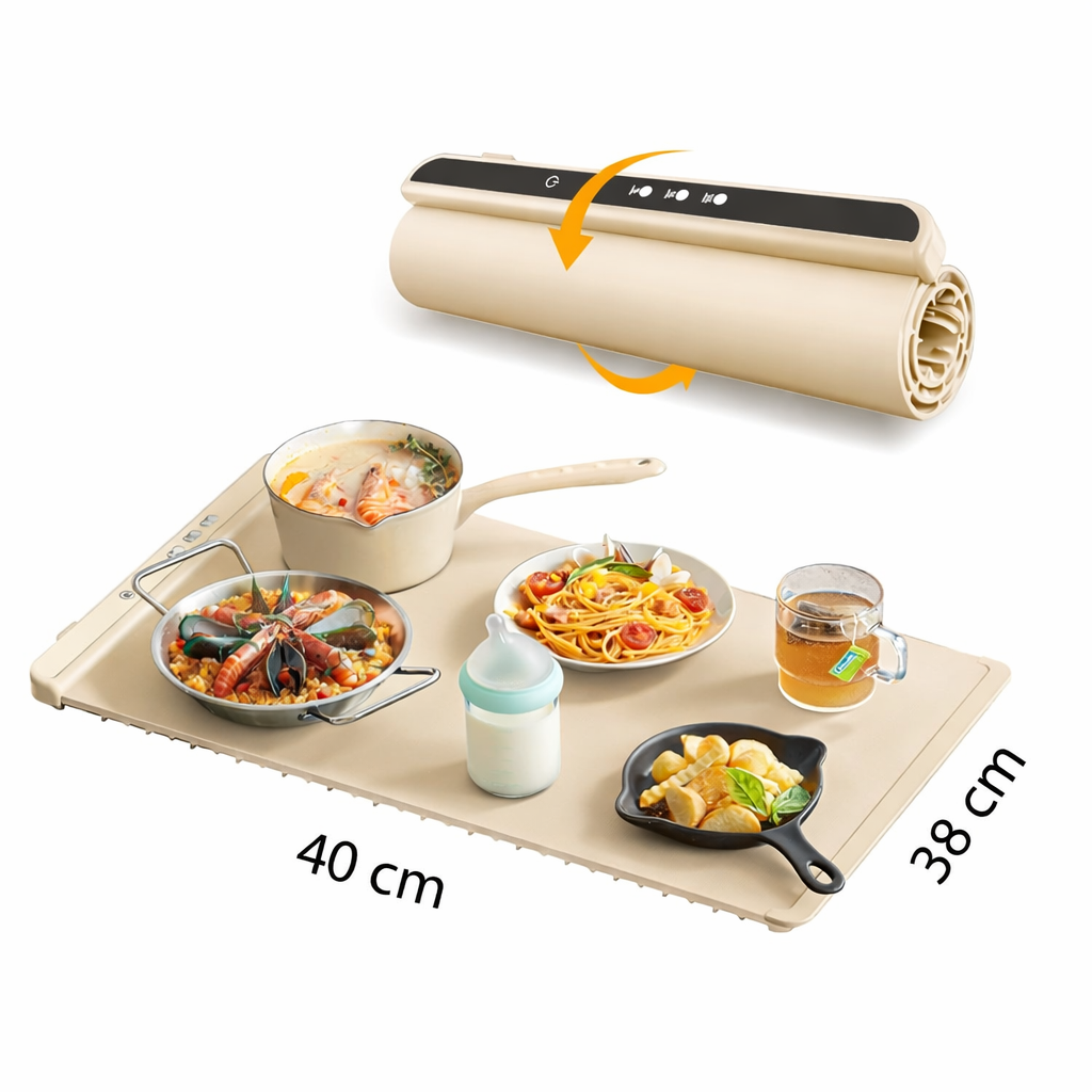 Me encanta esta alfombrilla calefactable, es perfecta para fiestas y reuniones, ya que mantiene la comida caliente cuando sale del horno. Súper fácil de usar y se enrolla para guardarla sin ocupar espacio.